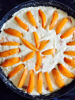 Versare il composto e disporre le fettine di albicocche a raggiera.